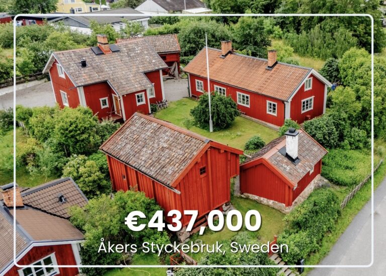 The plot of around 14,000 square feet has a walled garden. A school, shops, and transport connections are within easy reach. The capital Stockholm is around an hour by road or rail.