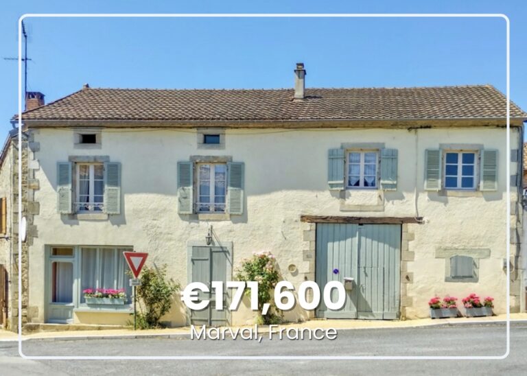 This renovated stone house occupies the village of Marval in the Périgord Limousin Natural Park. The main residence has three bedrooms and two bathrooms. An attached secondary house offers potential for guest accommodation or additional living space. A private courtyard of square feet features a wooden deck terrace. The garage provides covered parking. The property is sold with appliances, fixtures, and substantial furniture included.
