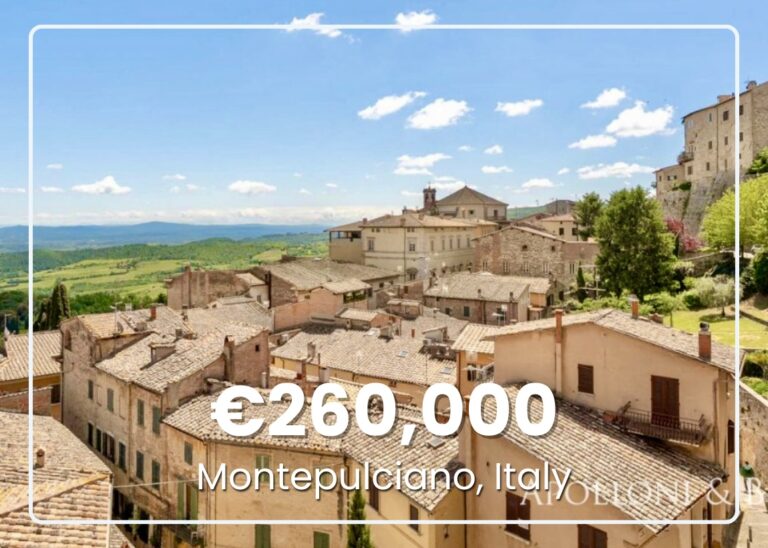 This charming two-bedroom apartment sits in a 14th-century palazzo at Montepulciano’s historic heart, just steps from shops and restaurants. Spanning 1,001 square feet across two floors, the thoughtfully renovated home features a living area with kitchenette, guest WC, and storage on the first level, while upstairs two bedrooms offer sweeping views over Tuscan rooftops and countryside.
