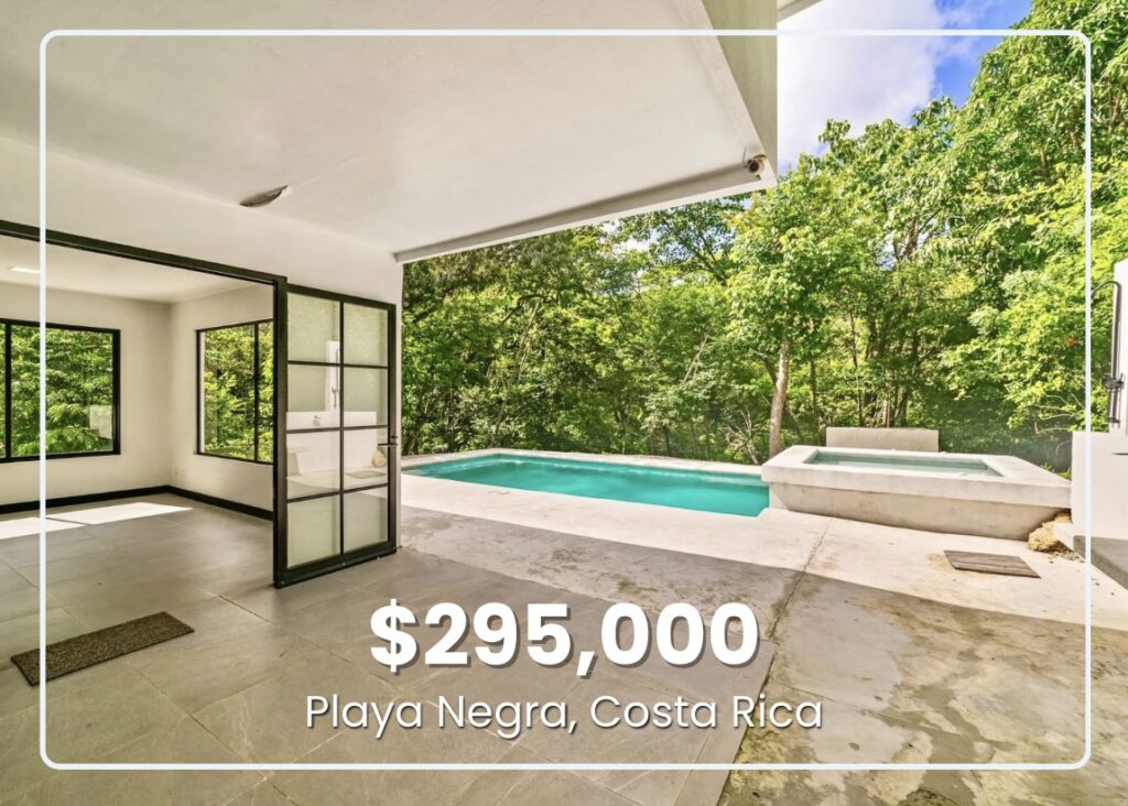 Pacific surf breaks along a stretch of Guanacaste coastline known for consistent waves and golden sunsets. The home sits surrounded