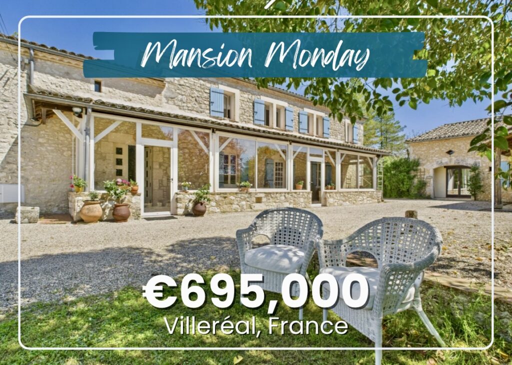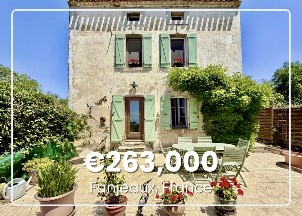 This luminous three-bedroom stone house sits in a charming hamlet and has breathtaking views across to the Pyrenees mountains. The