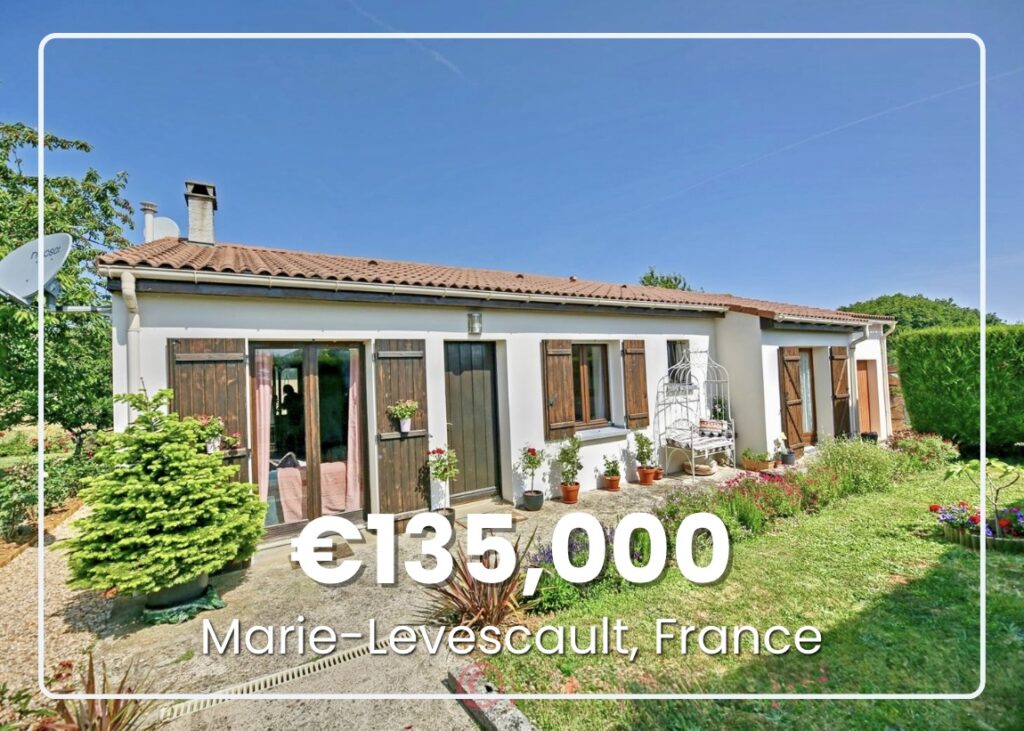 This elegant stone cottage sits in a tranquil village among the rolling countryside of Deux-Sèvres, where green meadows and ancient