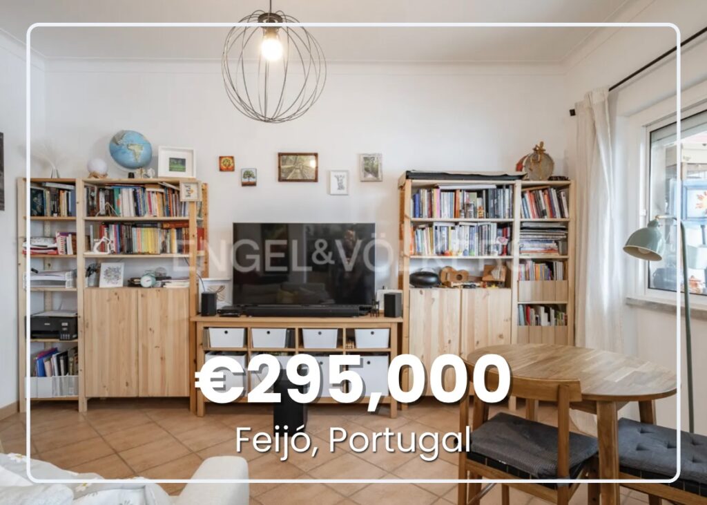 This beautifully renovated apartment is located in in central Feijó where golden light spills across the Tagus River and Lisbon’s