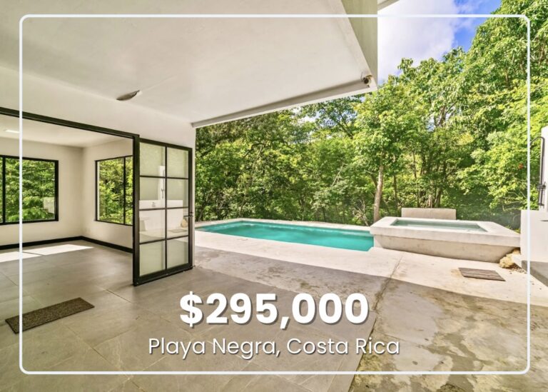 Pacific surf breaks along a stretch of Guanacaste coastline known for consistent waves and golden sunsets. The home sits surrounded by tropical greenery, minutes from four of the region’s most sought-after beaches—Playa Negra, Playa Blanca, Playa Junquillal, and Playa Avellanas.