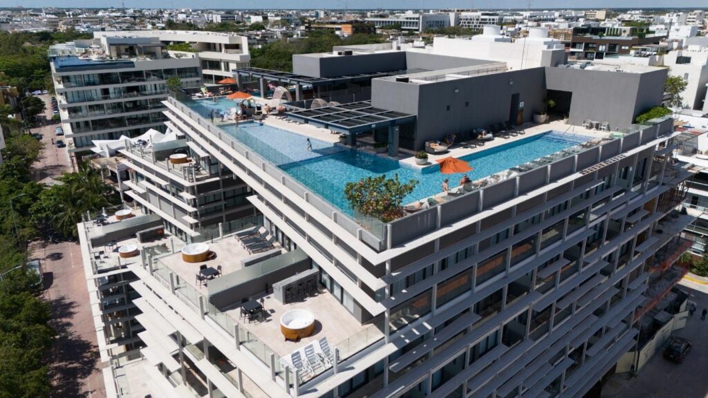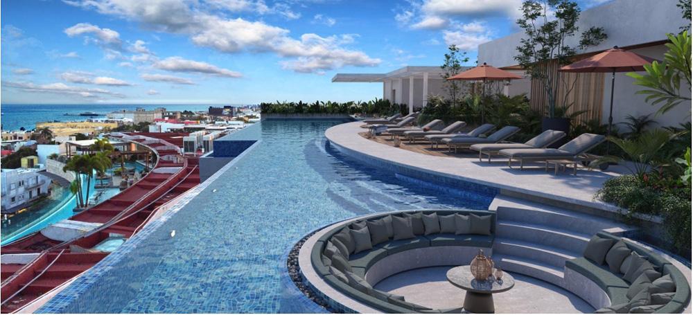 The Landmark is going to have the standout rooftop in Playa—full resort level luxury. A whopping half-acre of gardens, spa amenities, yoga area, infinity edge pool with Caribbean views, co working, wellness…restaurant, bar… (Renders shouldn’t be considered final.)